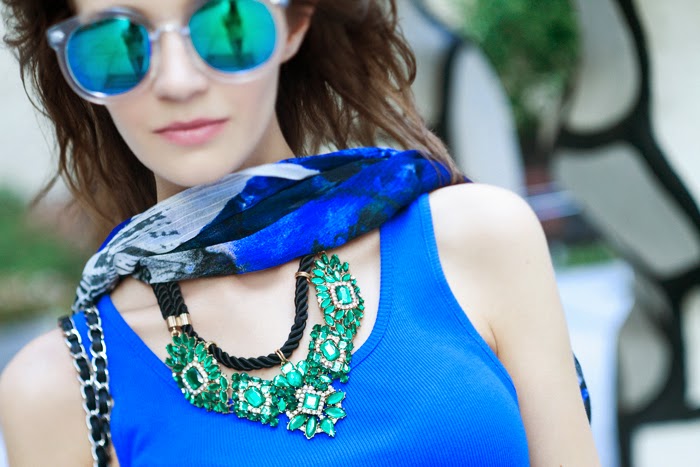 | top - adidas NEO Label | skirt - Chicwish (similar striped, black and green) | pumps - River Island (similar printed and floral) | sunglasses - SELA | bracelets - Hermes | scarf - vintage | bag - Chanel Vintage |
